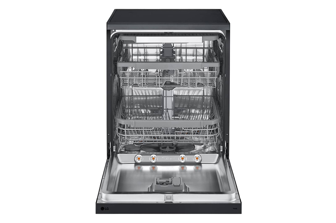 Experience effortless cleaning with the LG 14 Place Setting Front Control Dishwasher. It accommodates 14 place settings perfectly, making dish duty easier!